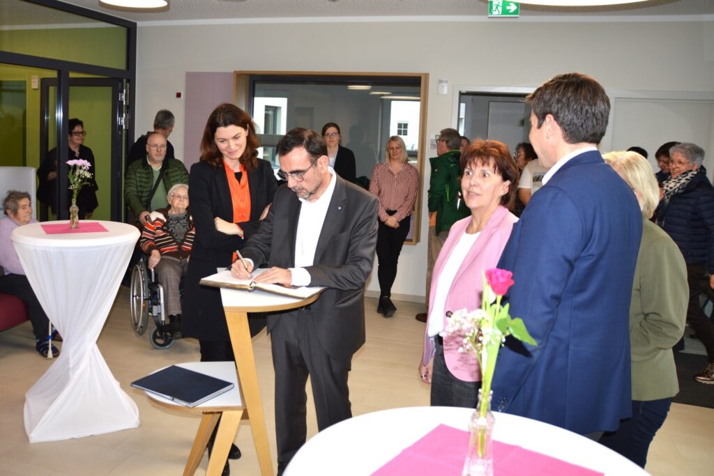 Mit 50 vollstationären und 10 Kurzzeitpflegeplätzen ist das neue Heim St. Josef in Mintraching nicht nur ein Ort der Fürsorge, sondern auch das größte und kostenintensivste Bauprojekt in der Geschichte der Gemeinde. Derartige Projekte sind auch ein Beweis dafür, welche weitreichende Entscheidungen Kommunalgremien treffen und verantworten können. Der Landkreis ist über mehrere Fachstellen, wie das Sachgebiet Hilfe in schwierigen Lebenslagen oder die Bauabteilung mit dem Projekt verbunden. Aus Sicht des Kreiskrankenhauses freut man sich vor allen Dingen über die zusätzlichen Kurzzeitpflegeplätze in der Region. Landrätin Tanja Schweiger vertrat auch als Bezirksrätin den Bezirkstagspräsidenten bei der Veranstaltung und betonte die Bedeutung wohnortnaher Pflegeeinrichtungen. Dabei verstehe sich der Bezirk immer als verlässlicher Partner. Zu Gast war auch der ehemalige bayerische Gesundheitsminister Klaus Holetschek. 13 Millionen Euro wurden investiert – 3,7 Mio. Euro davon wurden vom Freistaat Bayern über das Programm „Pflege – so nah“ gefördert. Die Gemeinde betreibt die Einrichtung in Eigenregie. Als integriertes Quartierszentrum steht St. Josef für Wohn- und Lebensqualität in familiärer Atmosphäre. Mit dem neuen Seniorenheim setzt die Gemeinde Mintraching ein starkes Statement für soziale Verantwortung.