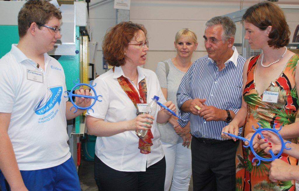 Tanja Schweiger, die bereits mit der ersten Veranstaltung ihrer Themenreise „Kein Jugendlicher darf verloren gehen“ deutlich gemacht hatte, dass eine gute Schul- und Berufsausbildung der Grundstock für ein selbstbestimmtes Leben ist, sah sich bei der Betriebsführung bei der Deutschen Technoplast erneut bestätigt: „Unternehmen sind auf gut ausgebildete Leute angewiesen. Das beginnt bei Schulabgängern, die mit einer Ausbildung anfangen, und zieht sich durch wie ein roter Faden: Berufliche Weiterbildung ist wichtig, um an seinem Arbeitsplatz mithalten zu können, aber auch, um sich selbst zu motivieren und zu entdecken, was alles in einem steckt. Sie ist das Mittel, um sich für seine Arbeit zu begeistern.“ Motivierte Mitarbeiter wiederum seien das wertvollste Gut für ein Unternehmen, um erfolgreich zu sein.