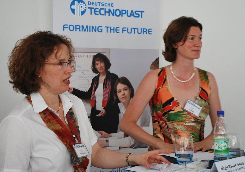 Die Deutsche Technoplast GmbH in Wörth wurde 2012 zum dritten Mal mit dem Güte-Siegel TOP JOB ausgezeichnet, seit wenigen Wochen zählt sie zu BAYERNS BEST 50. Auch W&L Deutsche Technoplast erhielt heuer erstmals die TOP JOB Auszeichnung. Die Preise seien nichts zum Ausruhen, sondern verpflichteten zur Nachhaltigkeit und dazu, beständig an Verbesserungen zu arbeiten, führte Birgit Bauer-Groitl aus. Entsprechend breit gefächert seien die Maßnahmen zur Personalentwicklung: Für Auszubildende finden zum Beispiel Jugend-Planungstage statt. Führungskräfte wie Mitarbeiter profitieren von berufsbegleitenden Weiterbildungen oder werden auch im Bereich „Management“ qualifziert. Einen zentralen Stellenwert nehmen regelmäßig stattfindende Gespräche zwischen Mitarbeiter und Führungskraft ein, um Unternehmensziele und Qualifikation abzugleichen. Anonyme Befragungen unter den Beschäftigten geben der Unternehmensleitung ein ehrliches Feedback darüber, was verbesserungswürdig ist. „Wer sich motivierte und engagierte Mitarbeiter wünscht, die loyal zum Betrieb stehen, muss kontinuierlich in Personalentwicklung investieren“, lautet das Fazit der Unternehmerin. Tanja Schweiger fügte bei der Betriebsführung ergänzend hinzu: „An diesem Beispiel sieht man sehr gut, dass qualifizierte Mitarbeiter nicht vom Himmel fallen, sondern dass man um sie werben und in sie investieren muss. Das kostet Zeit und Geld – eine Investition, die sich aber lohnt.“