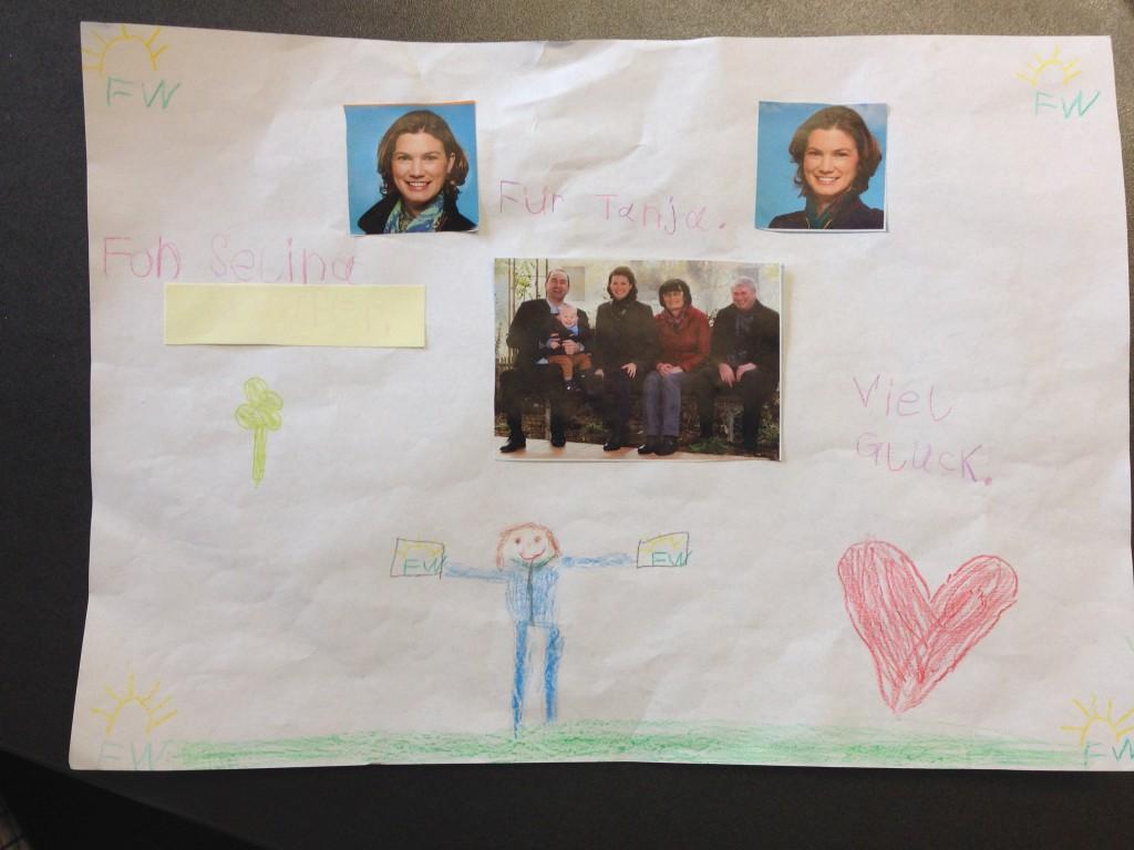 Letzten Freitag habe ich von zwei jungen Damen selbst gebastelte Geschenke bekommen. Das war eine Überraschung! Hab mich sehr gefreut. Beeindruckend, wie Kinder Plakate wahrnehmen. Hier ist das von Selina.